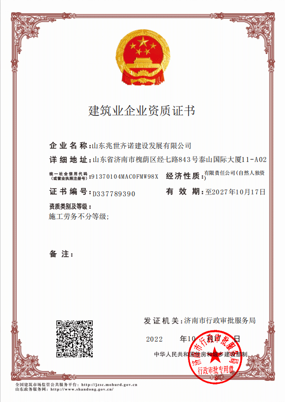 兆世齐诺公司成立于2016年,注册地山东济南、德州。业务涵盖建筑业资质办理、招投标及采购代理、学历提升、职称评审、企业三A三体系认证以及建筑类高端人才猎头服务等。公司在重视广大客户的需求的同时也非常重视客户的个性化要求,了解客户潜在的需要,给广大用户提供及时周到的服务。愿与各界朋友一道,精诚合作、精益求精、共筑美好世界梦。